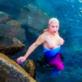 I am Hafmey of the North Sea—descended from Norse, Finn, and Celtic lines. 5'3", elegantly balanced, and with a presence that often photographs taller. A mermaid spirit in human form, I carry the allure of deep waters and secret tides.
